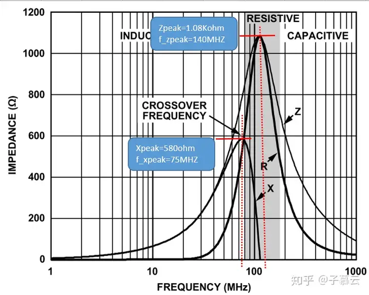 对XL和Xc的取点虽说不唯一,但是请注意公式1.1和1.2的适用范围,磁珠的阻抗(Z)有感性、阻性及容性三部分组合合成,计算L_bead的公式1.1只在感性区域内成立,公式1.2只在容性区域内成立。