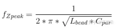 在磁珠表現出最大容性特性(Z ≈ | XC|;CPAR)的區域中,寄生 電容可根據下列公式計算:
