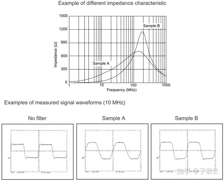 图3,举例说明了不同类型的磁珠对信号质量的影响。