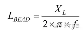 在測得的ZRX 曲線上,磁珠表現出最大感性特性(Z ≈ XL;LBEAD) 的區域中,該磁珠的電感可根據下列公式計算: